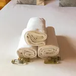 Une variété d'équipements de confort, notamment le fer à repasser et une table à repasser, est proposée dans le balcon et l'espace de repas. Il y a 2 salles de bain équipées d'une baignoire et d'une douche, ainsi que d'équipements de confort tels que d'un sèche-cheveux et des draps de bain.